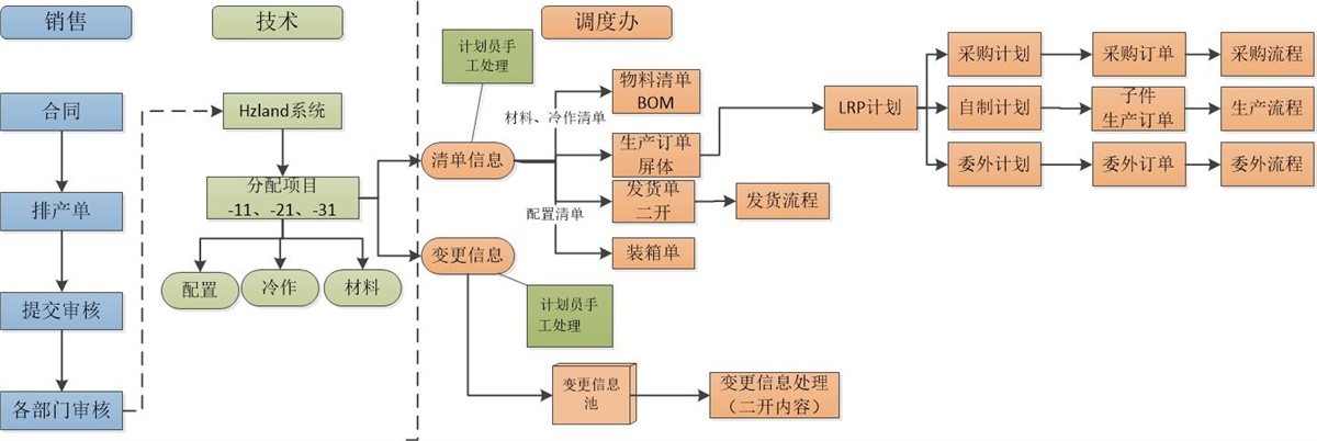 3)銷(xiāo)售到設計:通過(guò)客戶(hù)自己的hzland系統,對客戶(hù)訂單進(jìn)行設計生產(chǎn),拆分成配置清單、冷作清單、材料清單;